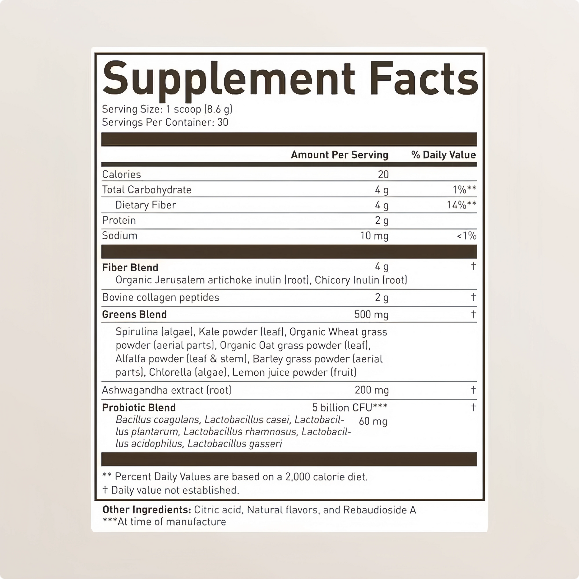 - Nutrient-Rich & Sugar Free: Our greens powder combines ashwagandha, collagen, and probiotics to create a nutrient-rich blend. This superfood aids digestion and supports gut health, making it an essential addition to your daily routine.*